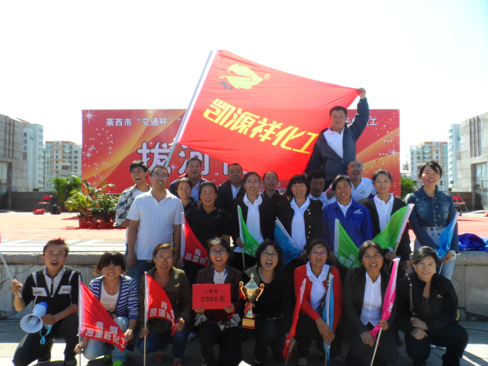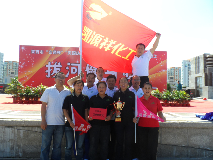 2012年9月29日萊西市總工會(huì )舉辦了“交通杯”慶國慶展風(fēng)采拔河健身賽,我公司共組織24人參加了此次比賽,程廠(chǎng)長(cháng)也親臨現場(chǎng),坐鎮指揮,隊員們齊心協(xié)力,啦啦隊們熱烈的加油。通過(guò)全體參加人員的共同努力最終獲得了第三名的好成績(jì),并獲得了2000元的獎金。通過(guò)比賽提高了企業(yè)形象及知名度。賽后為拔河運動(dòng)員們組織了慶功宴,為啦啦隊員發(fā)放了小禮品。
