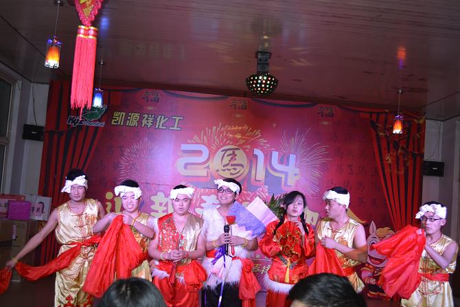 伴隨著(zhù)2013年的腳步,我們也即將迎來(lái)新的一年——2014年。你看!大街小巷都在為新春而忙碌準備著(zhù)。在這辭舊迎新之際,我公司為感謝董事長(cháng)及各位同事的支持,為慶祝大家2013年的戰績(jì),在農歷臘月二十這一天,董事長(cháng)王玉亭先生與管委會(huì )成員以及一直在一線(xiàn)默默貢獻的生產(chǎn)工人、常年在外奔波的銷(xiāo)售將士們歡聚在青島凱源祥化工有限公司,舉辦了一年一度的迎春晚會(huì )。