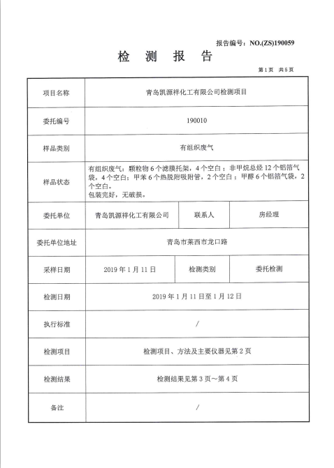 2019年1月份環(huán)境檢測信息公開(kāi)