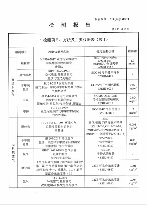2019年3月份環(huán)境檢測信息公開(kāi)