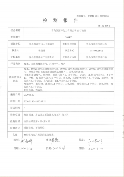 2020年5月份環(huán)境檢測信息公開(kāi)