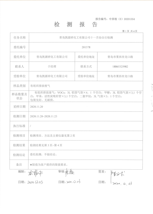 2020年11月份環(huán)境檢測信息公開(kāi)