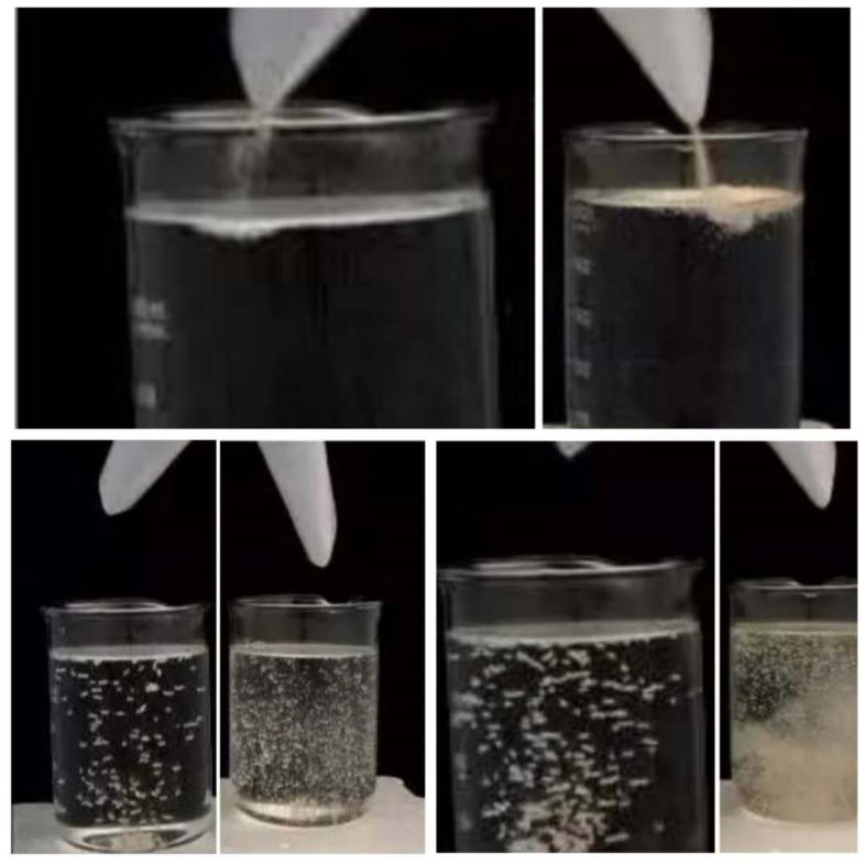 對照:左圖為競品,右圖為喜得冠,喜得冠入水即溶,競品直接沉底。